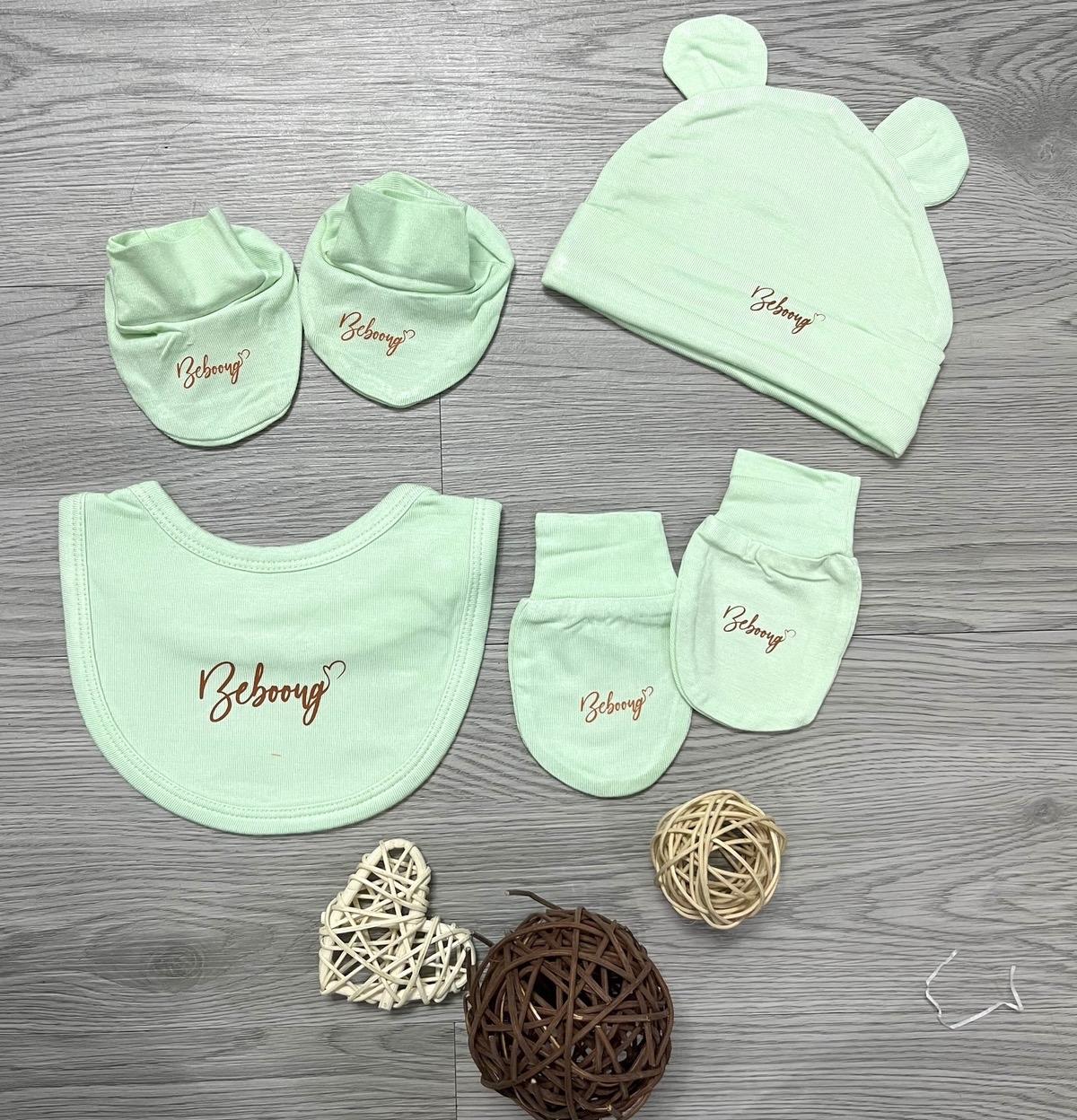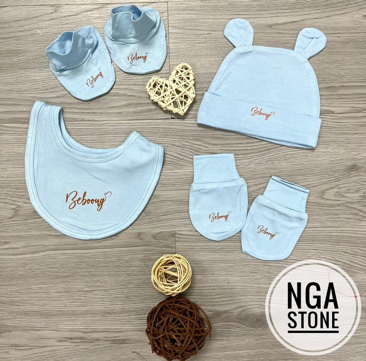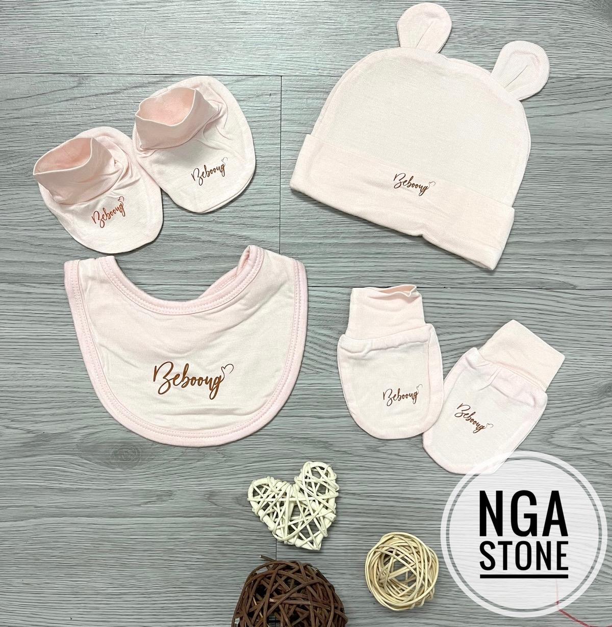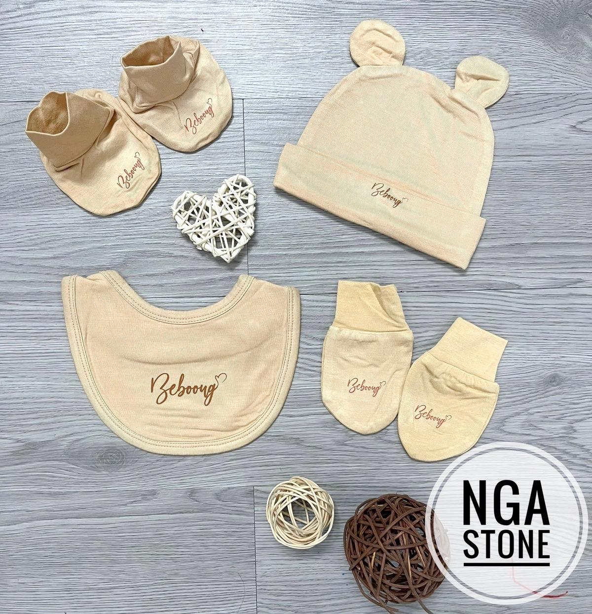 phụ kiện sơ sinh gồm mũ, yếm, bao tay, bao chân hãng BEBOONG Việt Nam, chất liệu petit mềm mát, co giãn tốt cho bé sơ sinh đến 3 tháng mẹ nhé.